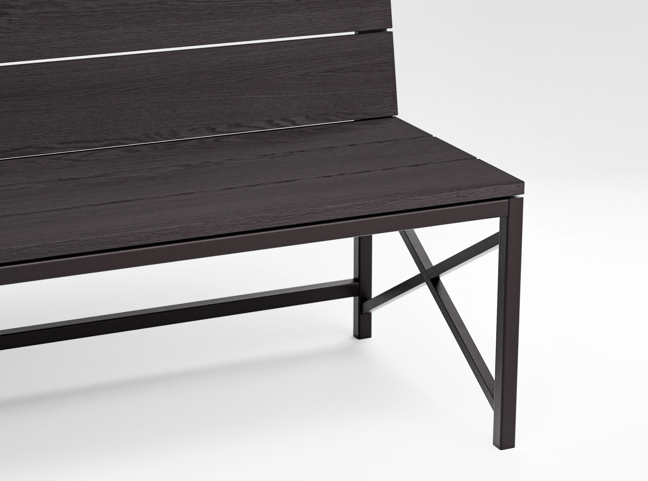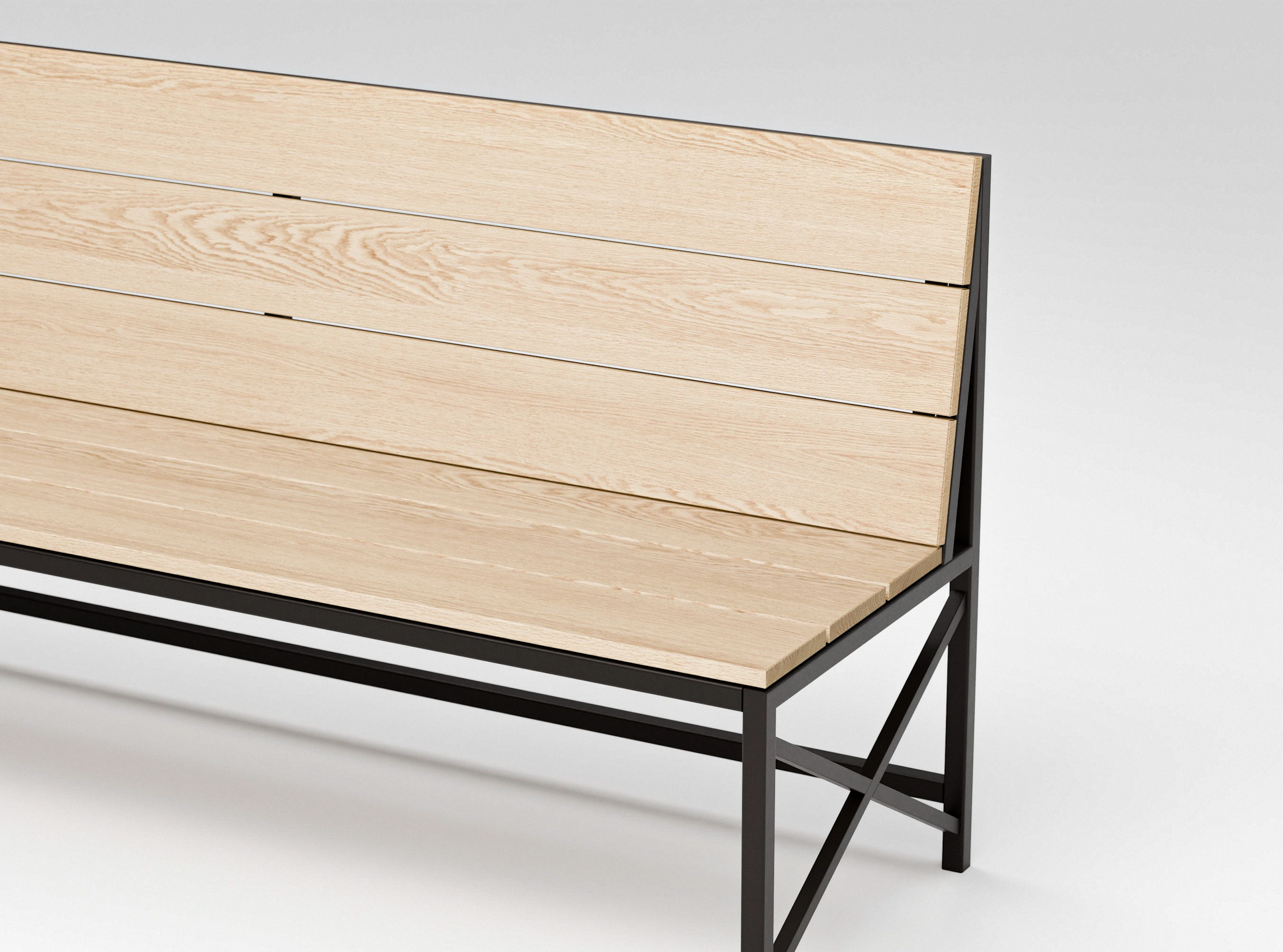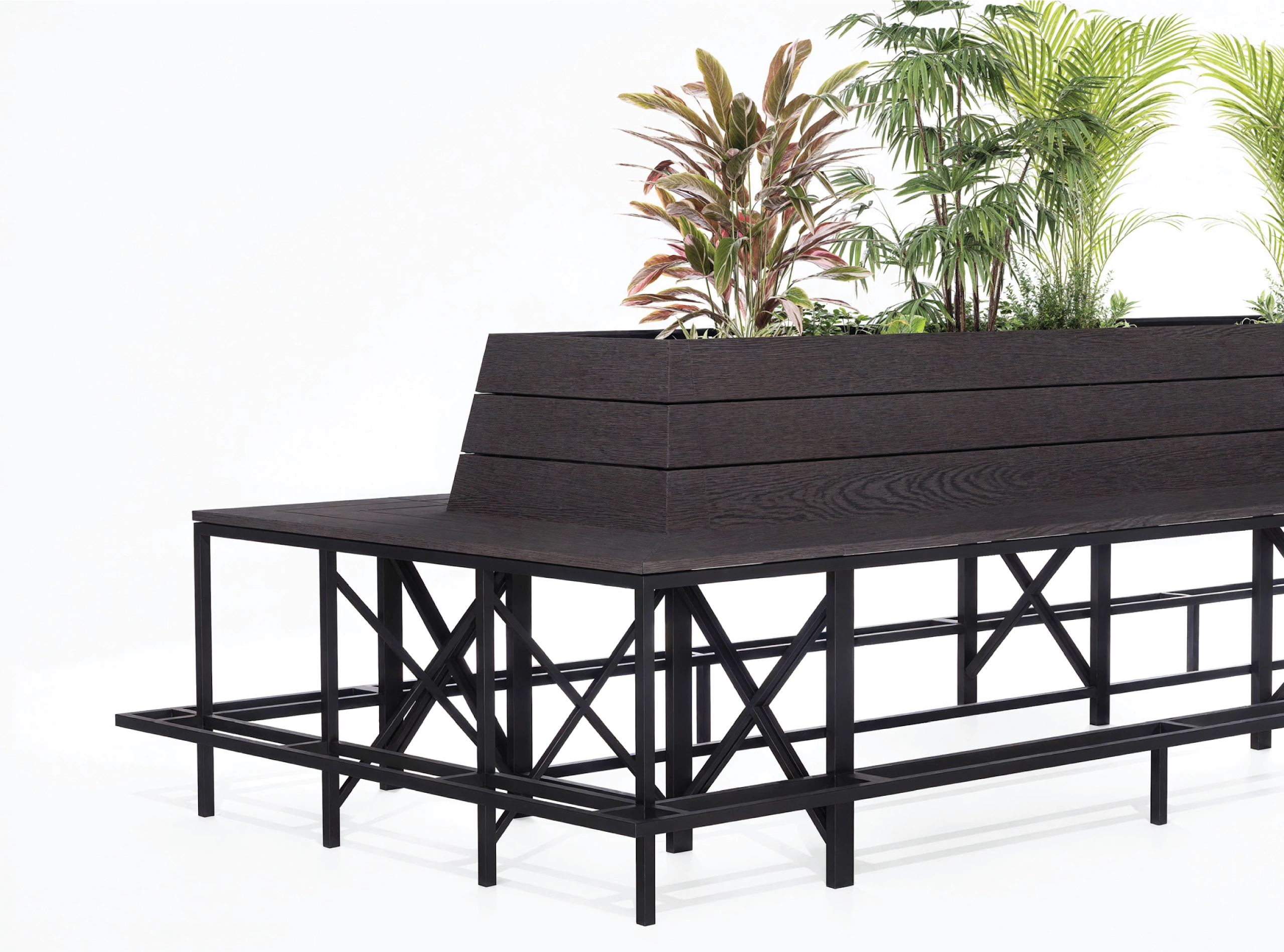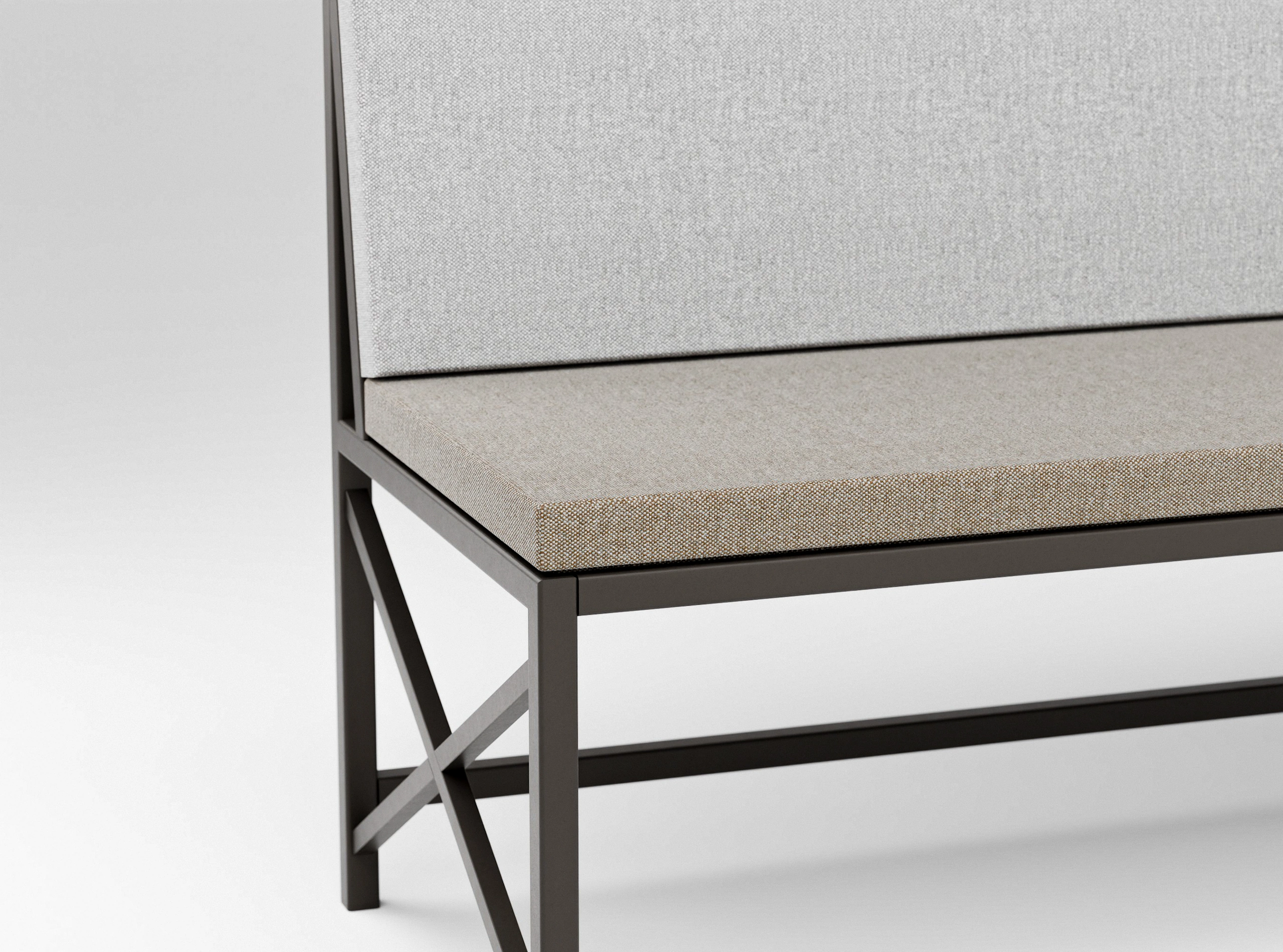Voor de collectie van Bakermat is een modulair bank systeem ontworpen met een herkenbaar X frame. Het systeem is in laag en hoog verkrijgbaar.